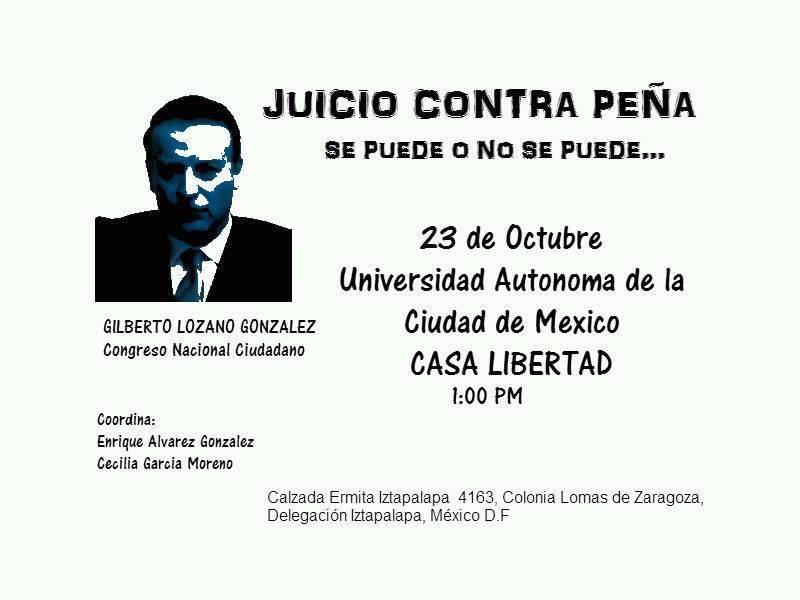 Me refiero al anuncio que está arriba del 23 de octubre en la Universidad Autónoma de la Ciudad de México, en él se omiten los acentos y luego se acentúa la palabra delegación. Ello denota que su autor (explícito o tácito) no examina sus actos, sus verdaderas intenciones ni su incongruencia. Por ello, el anuncio me desanimó, carece de seriedad, de auténtico compromiso. La enfermedad de EPN es la misma en ustedes: no verse a sí mismos, no autoengañarse, no autoobservarse (autovigilarse), no autotraicionarse y negarse a sí mismos por ser incapaces para reconocerse por sus actos y los resultados de ellos (el anuncio en cuestión lleva varias semanas así ahí).