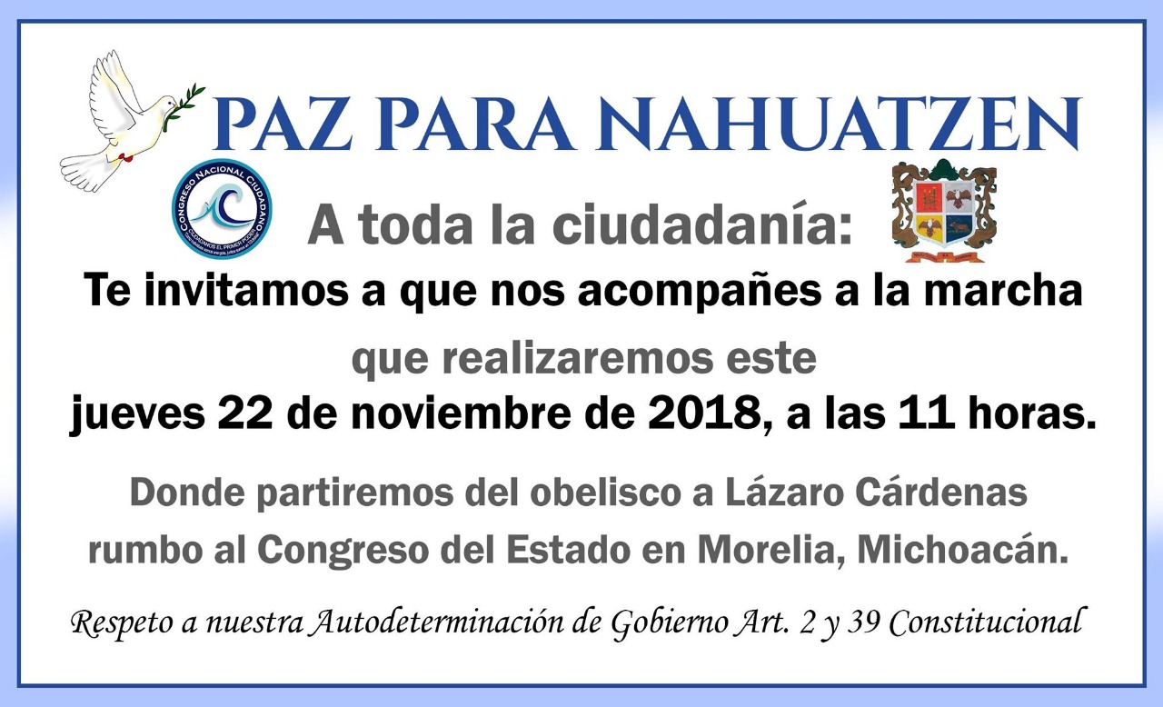 SI ERES UN MEXICANO que busca la LIBERTAD, LA JUSTICIA Y LA PAZ, es momento que nuestros hermanos de Nahuatzen TENGAN TU SOLIDARIDAD Y ACOMPAÑAMIENTO.