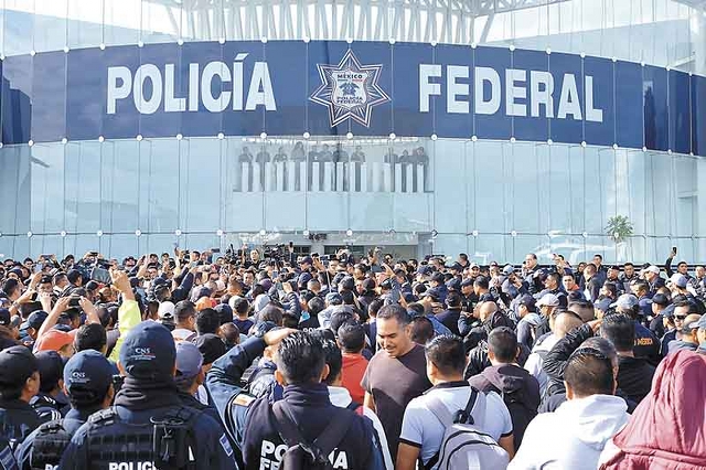 CIUDAD DE MÉXICO, 03JULIO2019.- Elementos de la Policía Federal (PF) tomaron el Centro de Mando de la Ciudad de México, en protesta de la suspensión de prestaciones, la dotación de equipo de mala calidad y la petición de su renuncia de antigüedad creada en la PF para su alta en la integración de la Guardia Nacional. FOTO: GRACIELA LÓPEZ /CUARTOSCURO.COM
