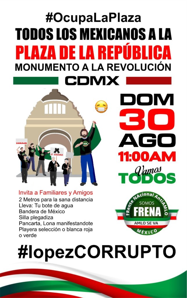 AGOSTO 30, DOMINGO A LAS 11 HORAS MONUMENTO A LA REVOLUCIÓN DE CDMX.