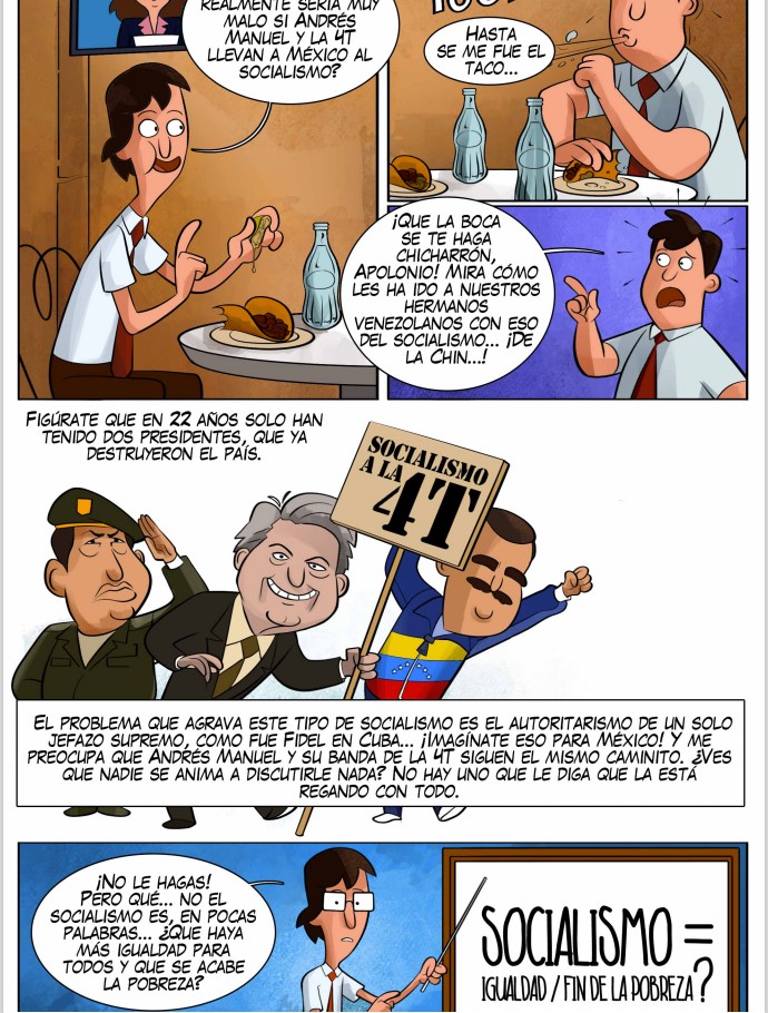 Cada 15 días en esta primera etapa se presentará una historieta, hasta llegar a 12, que sean la base de comunicación popular para instruir a los mexicanos en sus habilidades de discernir para evitar el engaño, la mentira y la perversidad del sistema político mexicanos que siempre les ha dado «ATOLE CON EL DEDO».