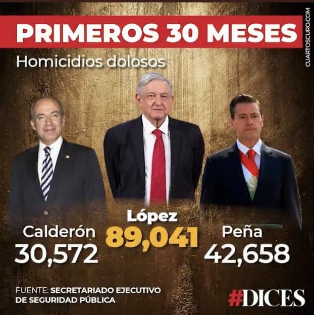 Celebrar como triunfo LOS 87 MIL ASESINATOS, y FELICITAR a los cárteles del Crimen por «portarse bien en las elecciones», al buen entendedor pocas palabras.