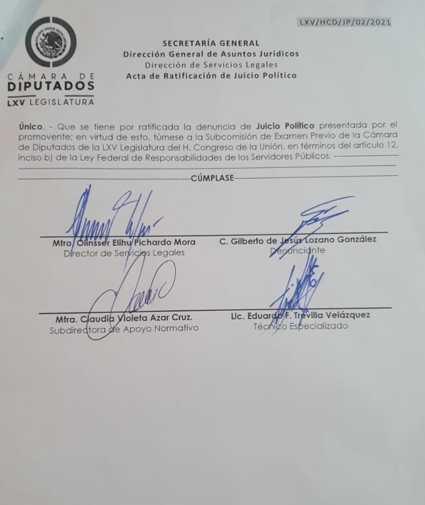 EL contenido de la Denuncia está integrado en 84 fojas y 22 anexos y fue presentado por conducto de Gilberto Lozano, Coordinador Nacional para presentación el pasado viernes 24 de septiembre ante la Secretaría General de la Cámara de Diputados.