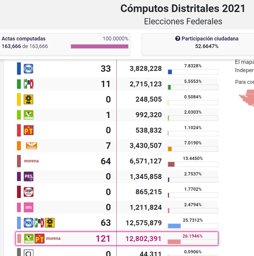En Junio 6 la mayoría VOTÓ contra AMLO y sus secuaces; ellos solo lograron 20.5 millones de votos (MORENA+VERDE+PT) y en contra fueron 28.5 millones de votos.