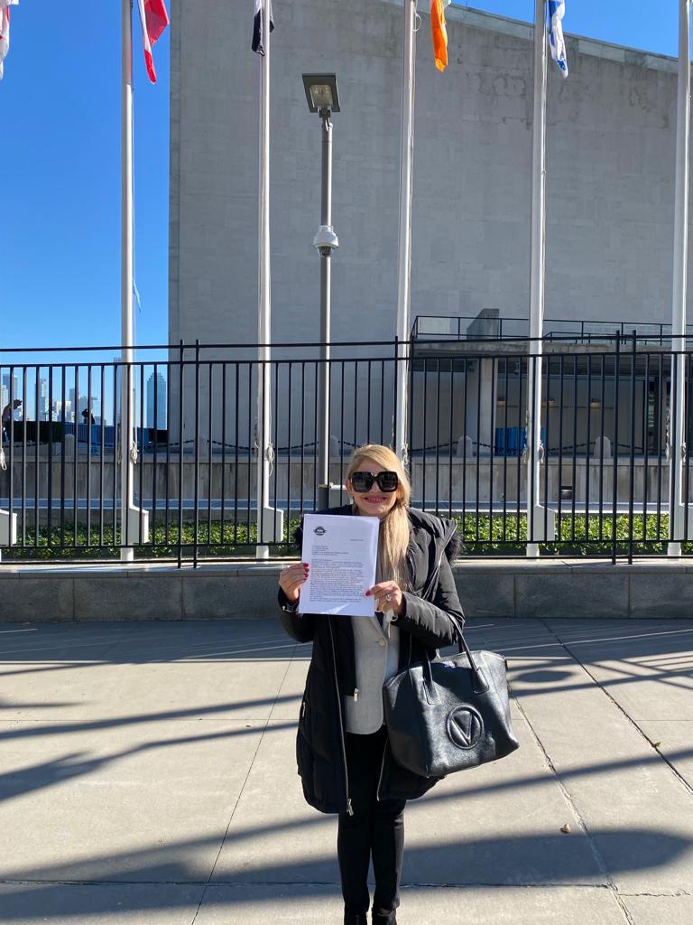 Maribel Garza coordinadora de FRENA USA entrega carta a al ONU para solicitar presencia de OBSERVADORES INTERNACIONALES en la #Revocación de Mandato de #AMLOut