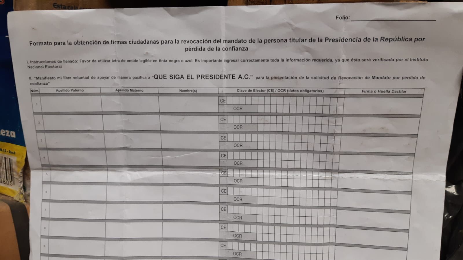 Aquí una muestra de la hoja que usa MORENA para recabar firmas, que NADA tiene que ver con la OFICIAL DEL INE.