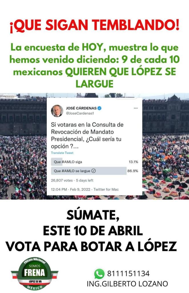 Contigo, sin ti o a pesar de TI, Los MEXICANOS se están UNIENDO para REVOCAR EL MANDATO DEL Dictador López, el tirano, mentiroso, corrupto y TRAIDOR.