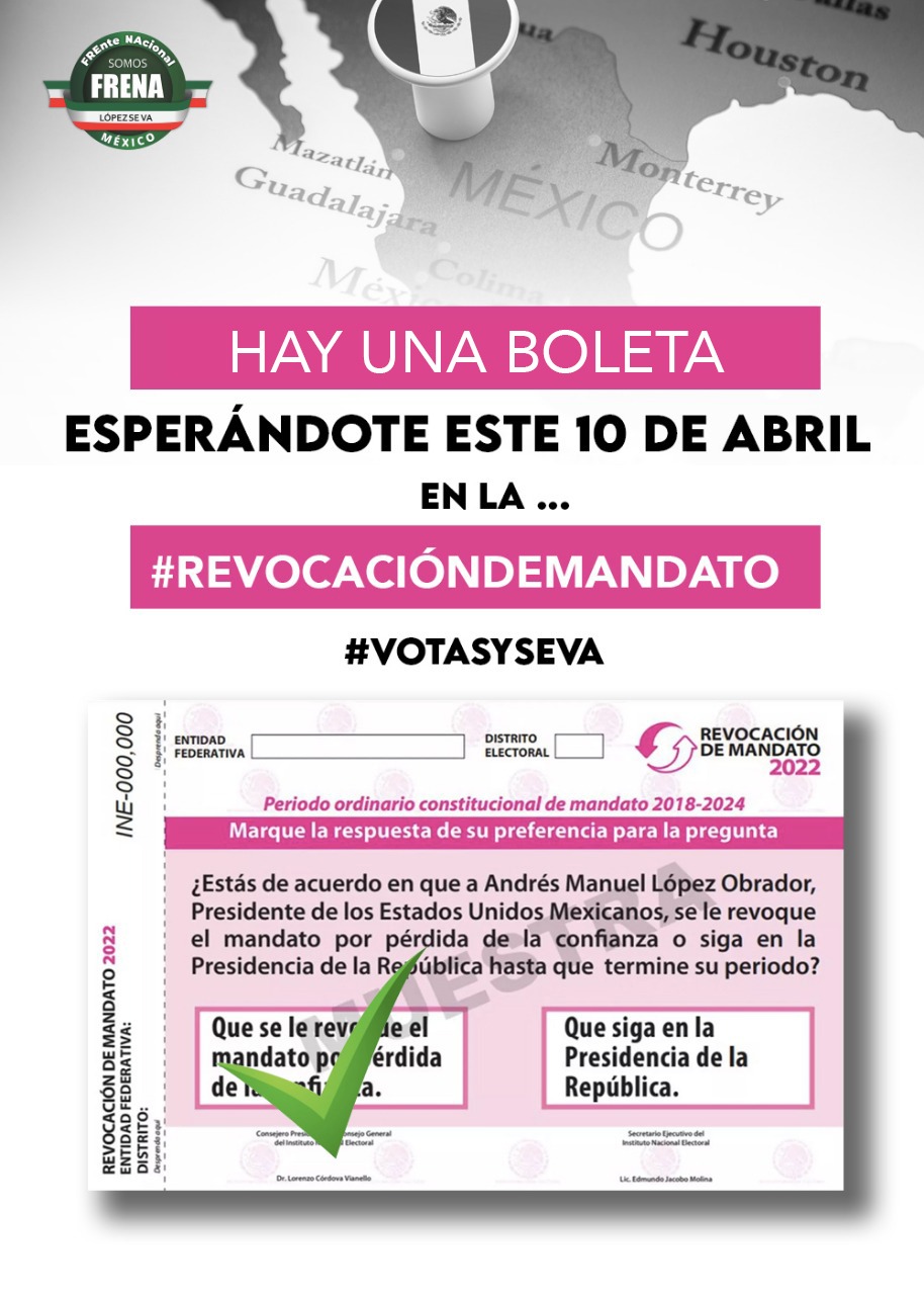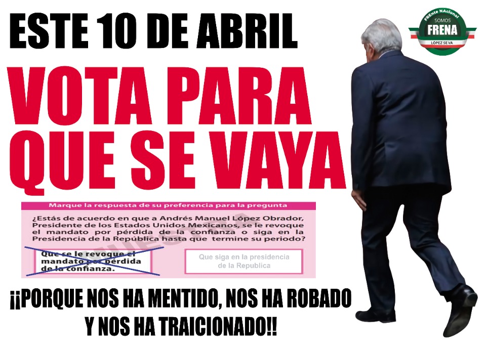 Acabar con la Dictadura de la 4T y su rumbo socialista/comunista, VOTANDO por que se le revoque el mandato, se le despida como mandatario, y se le retire del puesto.
