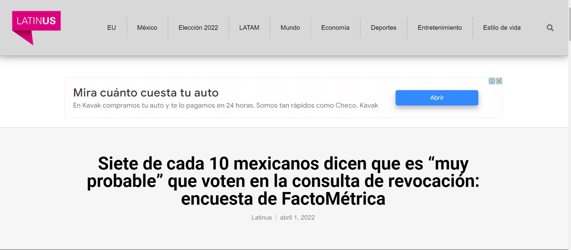 II. Por su parte LATINUS menciona que 7 de cada 10 mexicanos van a ir a las URNAS.