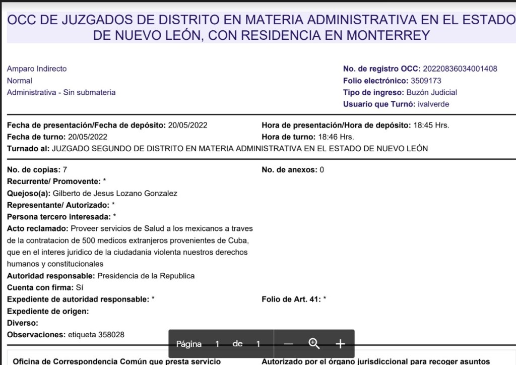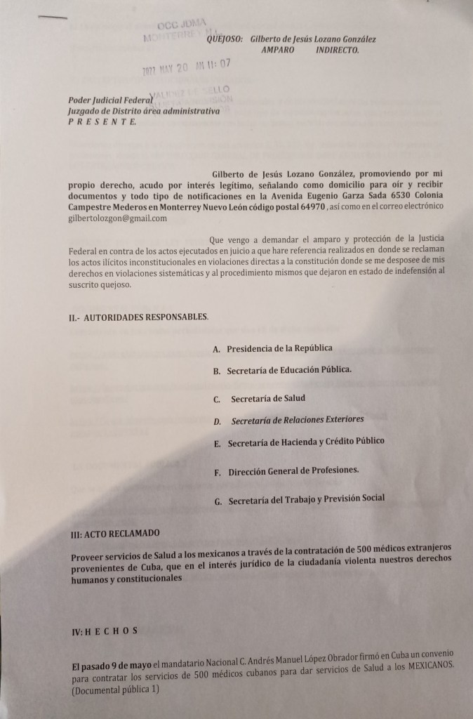 El día de ayer FRENA dio el paso de presentar AMPARO por violaciones constitucionales por parte de AMLO en la contratación de médicos CUBANOS.