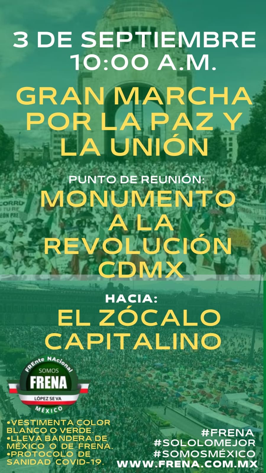 Convocamos a Una Gran Marcha por La Paz y Unión, este septiembre 3.