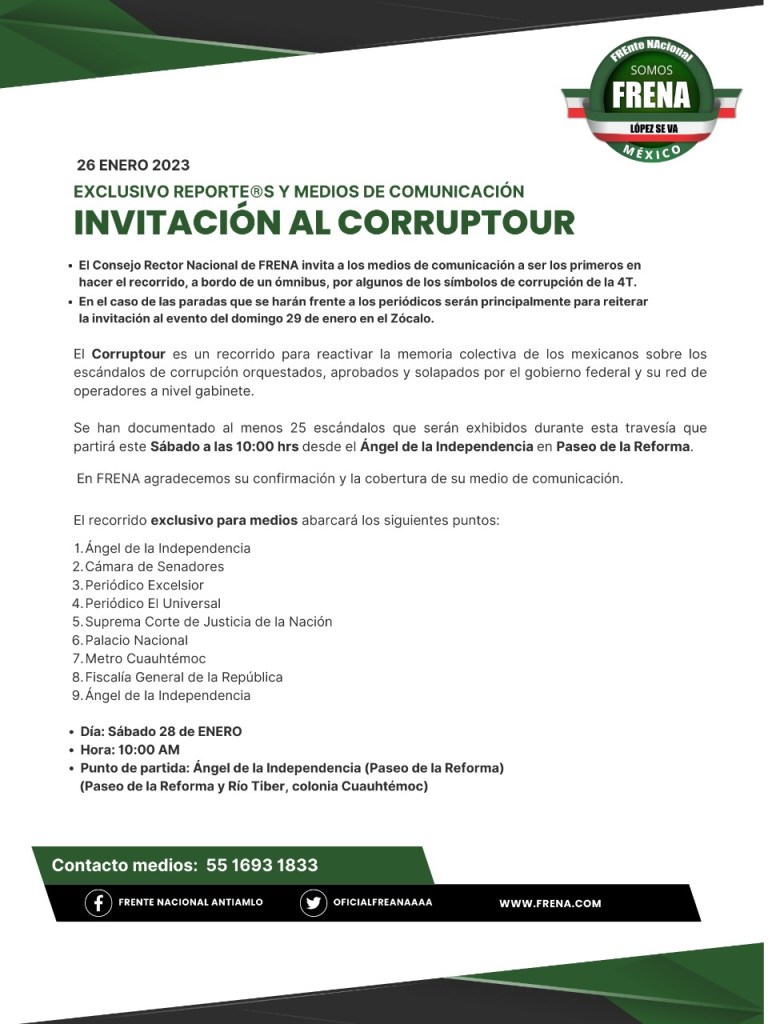 Como antesala, de los DELITOS GRAVES, ineptitud, incapacidad, mentiras, charlatanería, traición a la PATRIA, fundamentaremos en este CORRUPTOUR DE LA DICTADURA el que un día más con López Obrador es un HORROR.