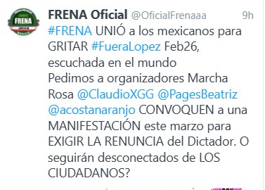 5. El grito en todo el país fue #FueraLopez, grito que lleva años en FRENA pues somos la ÚNICA REAL OPOSICIÓN AL DICTADOR que da la cara, golazo. GOL 5