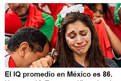 El coeficiente intelectual CI de mexicanos es 86, INFORME MUNDIAL, SUBNORMAL