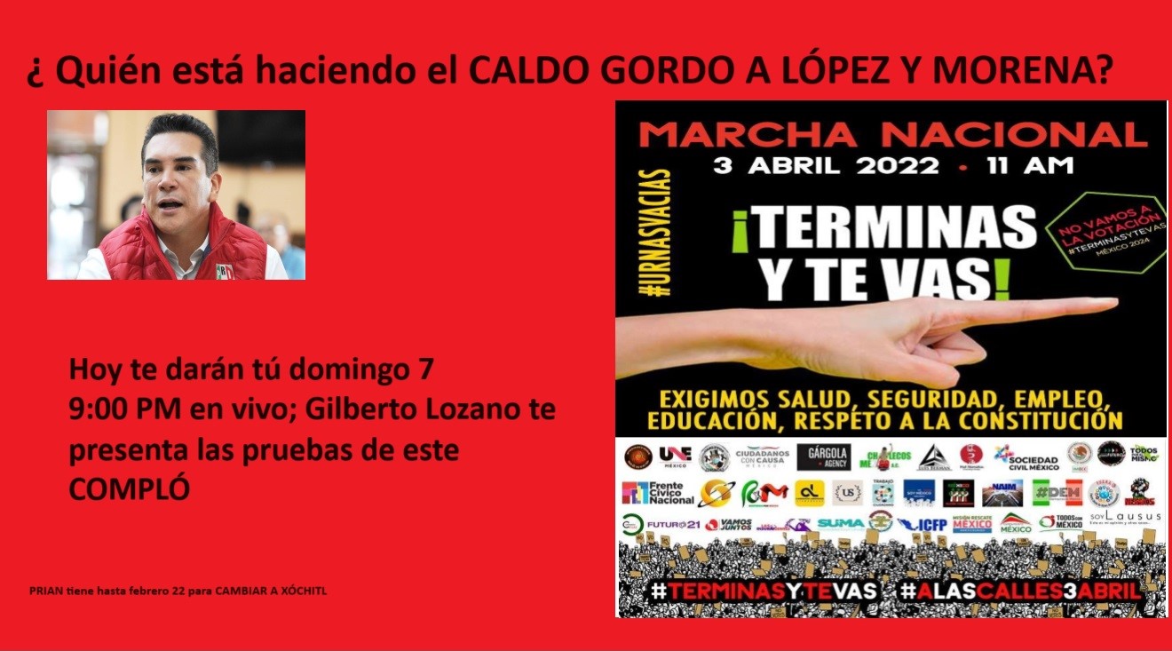 Al extremo de pedir VOTE por alguna de las ZURDAS socialistas, aborteras, pro agenda 2030, pro LGBTT, fanáticas del Foro de Sao Paulo, políticas claramente comprobadas como corruptas, oportunistas y vividoras que «compiten» para simular democracia o una esperanza de sacar a MORENA del Palacio.