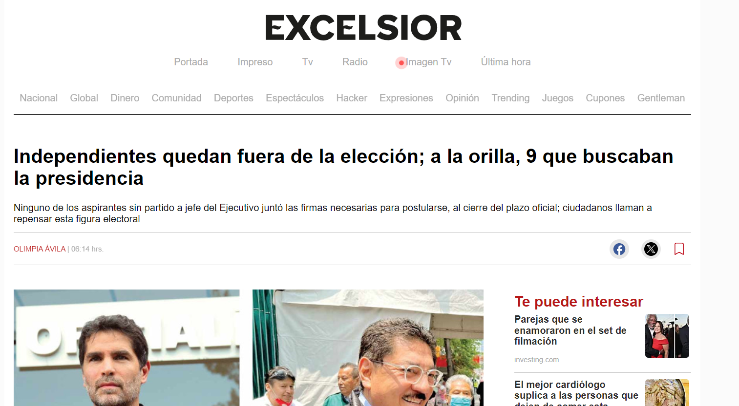 Aspirantes INDEPENDIENTES no llegan ni a la quinta parte del mínimo requerido de FIRMAS.