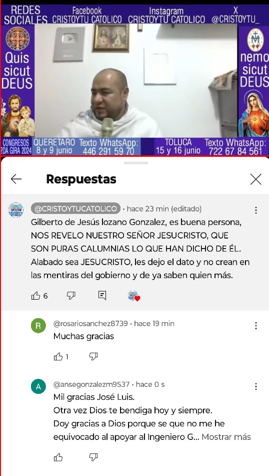 Canal CRISTO Y TÚ CATÓLICO respaldo firme a Gilberto de Jesús Lozano González.