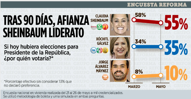 Mis análisis más allá de filias y fobias se va confirmando, hoy la encuesta del Reforma es knockout.